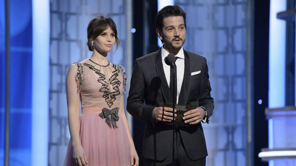 Acompañado por Felicity Jones, su compañera en 'Rogue One', la última entrega de la saga de 'Star Wars', Luna llegó al escenario diciendo: 'Silencio por favor, buenas noches'.
