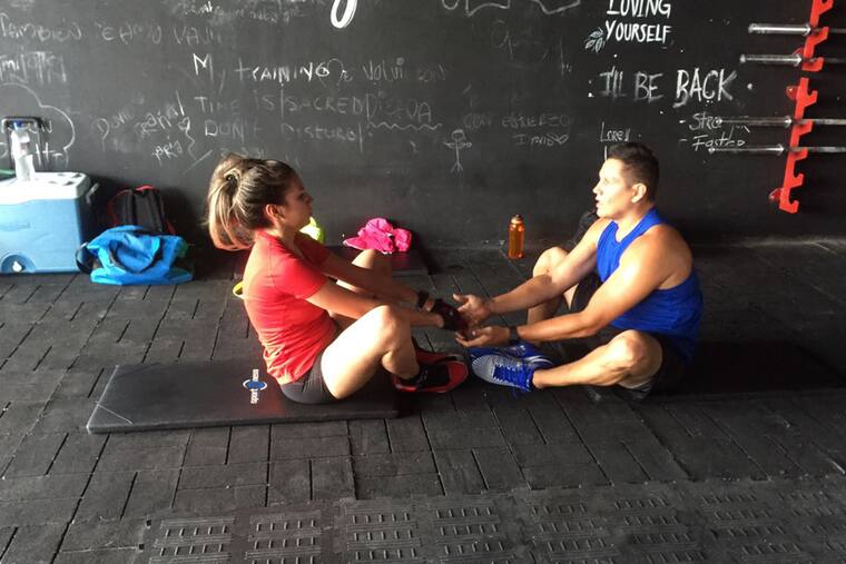 La práctica de crossfit (sistema de acondicionamiento físico) para Ginneli Riaño y su novio Juan Sebastián Díaz, se ha convertido en la excusa perfecta para hacer algo diferente en conjunto. Estos dos barranquilleros han confirmado que hacer ejercicio juntos le ha beneficiado a la relación, ya que según Riaño, 'al momento de entrenar en parejas tratamos de colocarnos juntos y hacemos el intento por alcanzar el peso del otro. En el caso de la práctica individual, nos damos ánimos mutuamente, hacemos el calentamiento juntos, empezamos con la clase y luego culminamos con los estiramientos'.