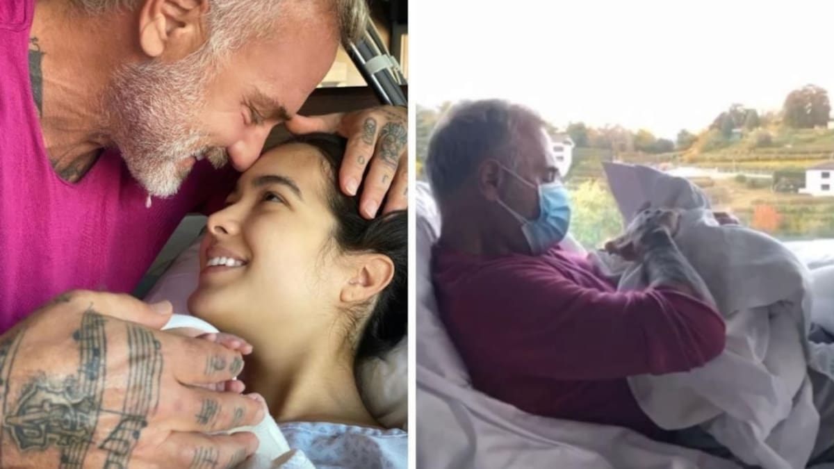De igual forma, en su perfil, publicó una imagen en la que se ve desde cama tomando de la mano a Gianluca con su bebé en su pecho, intentando lactar a su hija con ayuda de un médico.