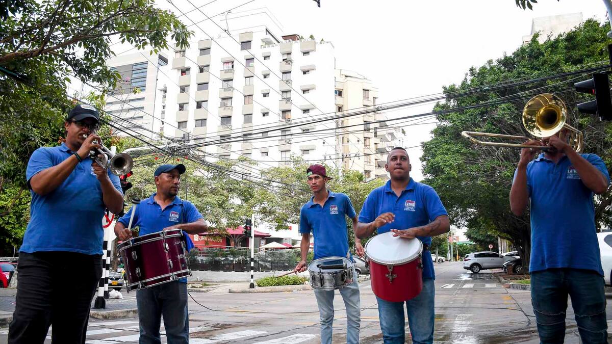 En la esquina de la 82 con 52, un grupo de hombres vestidos con camisetas azules cantan ‘La butifarra’, ‘20 de enero’ y ‘Lamento náufrago’, entre otros clásicos de la música del Caribe. Entre porros, guarachas, merecumbé, charanga y cumbias pasa los días Show Latino, un sexteto venezolano que encontró en Curramba una tierra muy similar a su país natal.