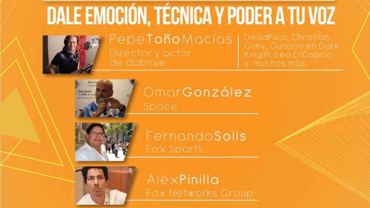 El evento, que tuvo su primera experiencia en Bogotá el pasado mes de marzo, contará con dos actividades: en la mañana se realizarán charlas y en la tarde talleres a cargo de invitados con gran trayectoria en el mundo de la locución y el doblaje en Latinoamérica, como Pepe Toño Macías, director y actor de doblaje mexicano quien es la voz de Leonardo Dicaprio, Deadpool, 50 sombras de Grey (Christian Grey), dibujos animados y muchos más, es uno de los hombres más relevantes en el doblaje y la locución en México, y también es la voz de Fox Networks group del Canal Fox Life.