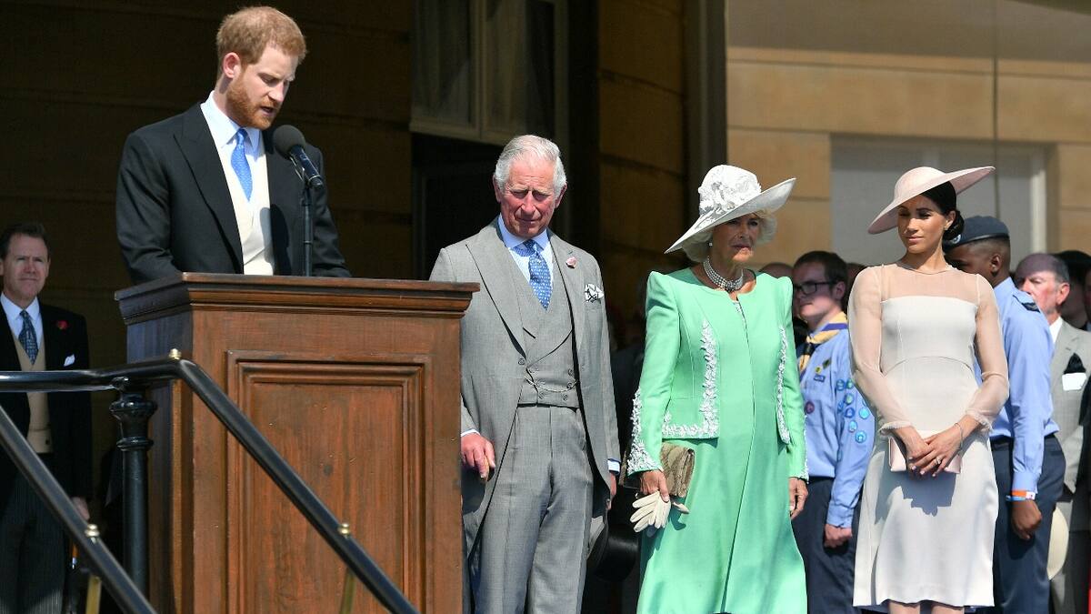 Ambos acudieron a una fiesta en los jardines del palacio de Buckingham para celebrar el 70º cumpleaños del padre de Enrique, el príncipe Carlos, heredero al trono de Isabel II.