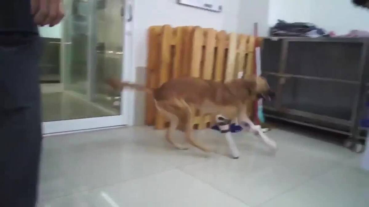 El canino usó por primera vez las prótesis que le colocaron en sus patas delanteras y su reacción ha generado más de un comentario de felicidad en redes sociales.