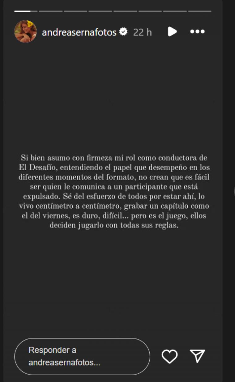 Y es que presuntamente a Andrea le han llovido mensajes de los fanáticos del reality, razón por la que ella se defendió.