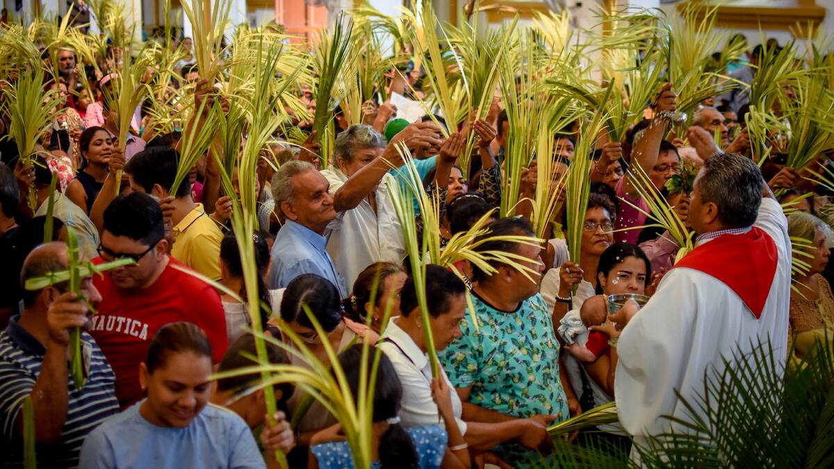 Aunque los palmiches se encontraban prohibidos por mandato de la Alcaldía, los católicos los portaron un año más con el fin de simular la bienvenida de Jesús a Jerusalén.