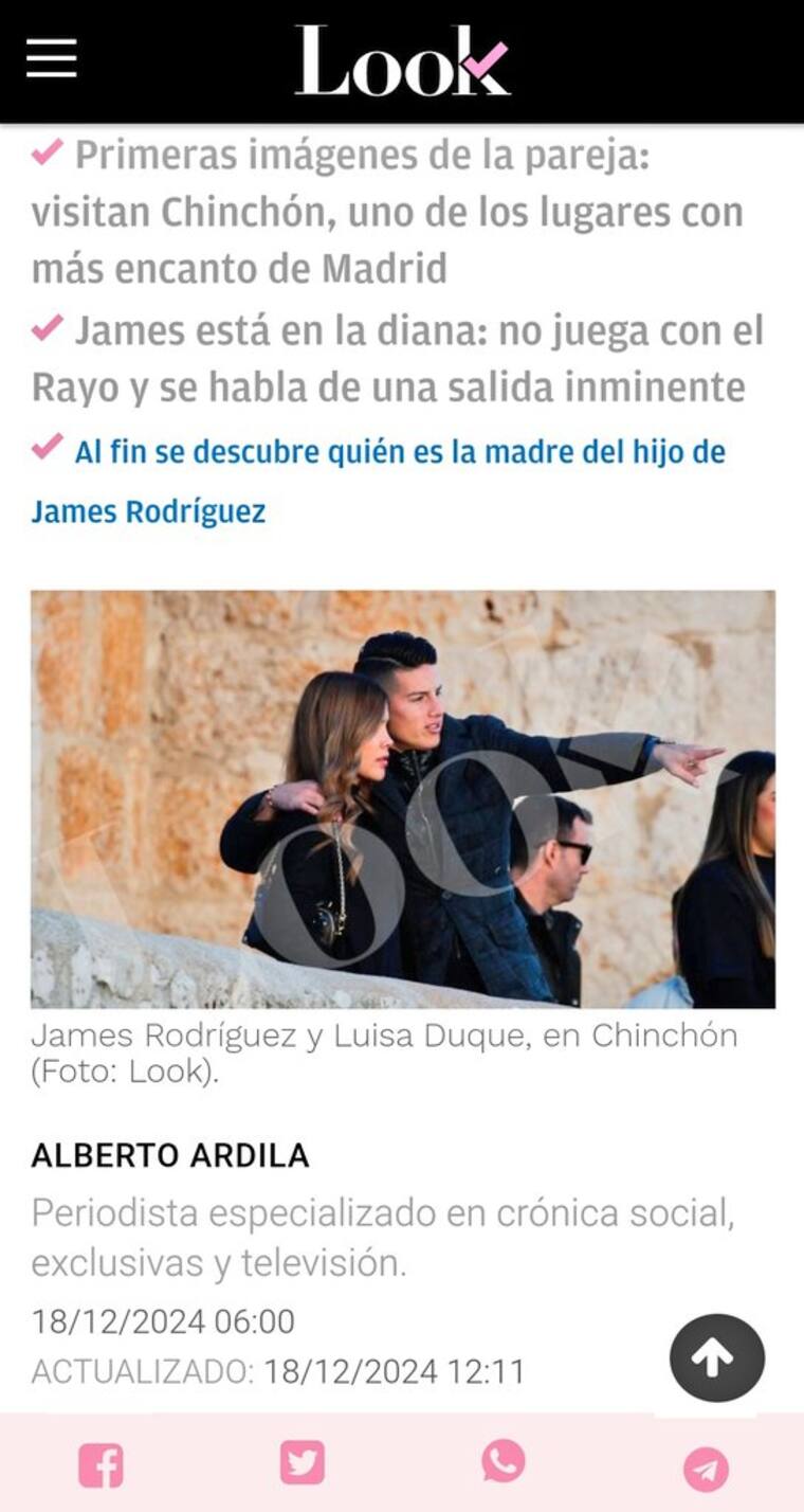 Incluso, medios españoles como OK Diario publicó en diciembre de 2024, algunas fotografías de James conociendo Madrid junto a Luisa, cuando todavía jugaba en Rayo Vallecano.