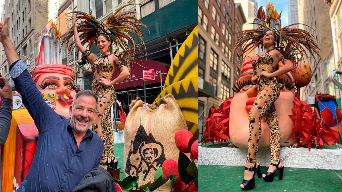 La fantasía fue diseñada y elaborada por la ‘Aguja de Oro’ de Colombia Amalín de Hazbún y con ella la soberana presidió la delegación colombiana de la parada que este año llega a su versión número 55.