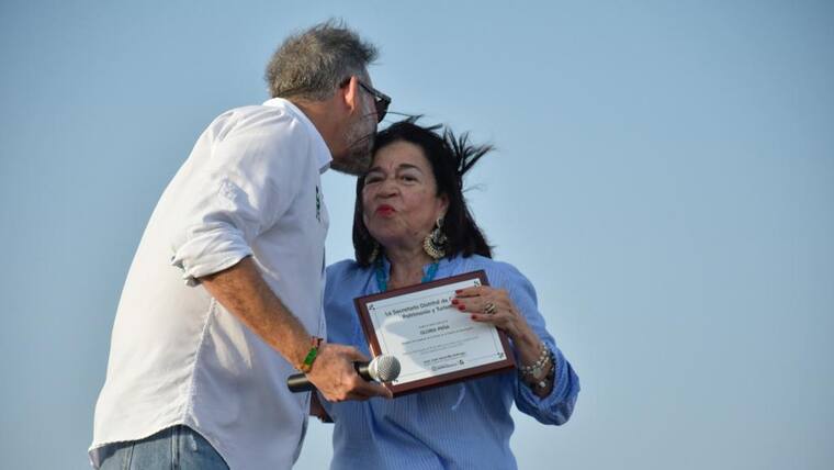 'Debo tener fuerzas porque hablé frente a la Unesco en París para que el Carnaval fuera declarado Patrimonio de la Humanidad hace 15 años. Pero, cuando voy a hablar delante de un público barranquillero siento nervios. Estoy feliz por los 60 años de mi vida artística', dijo Gloria Peña al recibir su distinción.