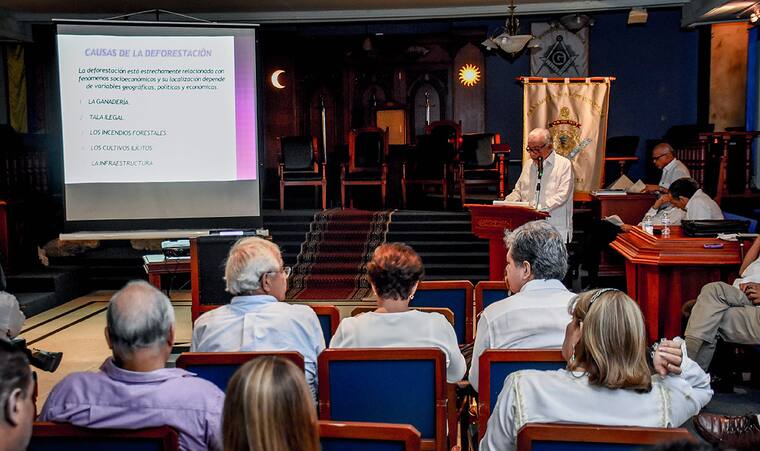 Allí, en un salón en el que 62 personas asistieron, entre las cuales había 17 mujeres, acompañantes e hijas de los masones, escucharon la historia de la organización y qué proponen para que el país enfrente dificultades como la deforestación. 'Quiero convertir esta institución en un evento académico permanente', agrega Manuel Torres Polo.