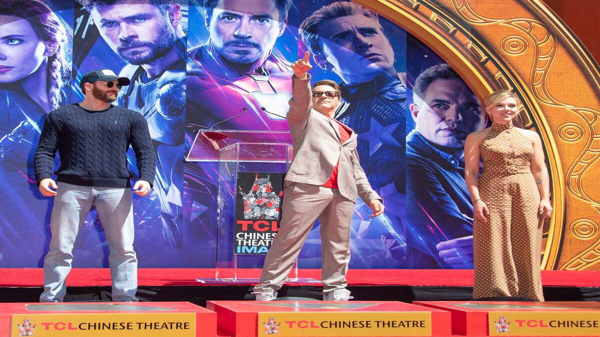Las estrellas de la última película de 'Avengers' Robert Downey Jr., Chris Evans, Mark Ruffalo, Chris Hemsworth, Scarlett Johansson y Jeremy Renner, dejaron este martes su huella en Hollywood, en un bloque de cemento fresco en el icónico Teatro Chino.