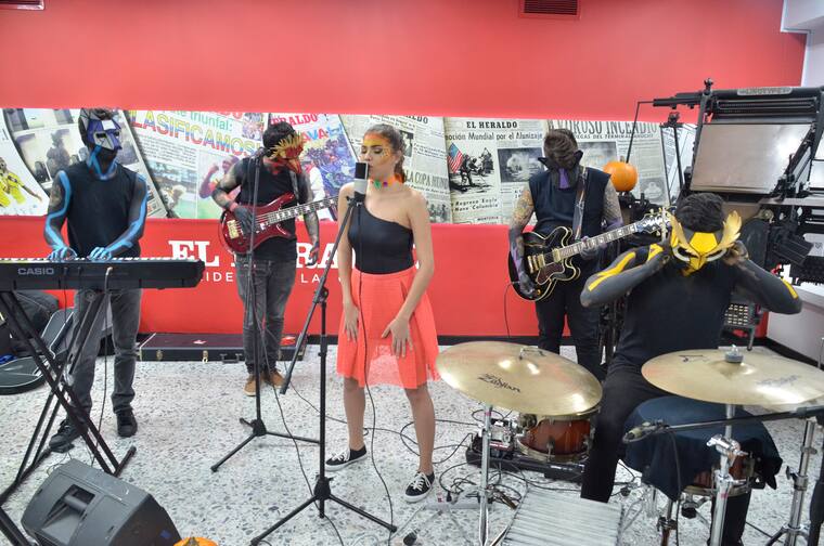 Con máscaras de animales, pinturas en sus cuerpos, vestidos de negro y mucha música alegre llegó a la reciente edición de #SesionesEH la agrupación barranquillera Karnivale. En este espacio que ofrece EL HERALDO a los músicos nacionales e internacionales, los jóvenes tuvieron la oportunidad de mostrar su talento y las canciones que hasta ahora han compuesto.