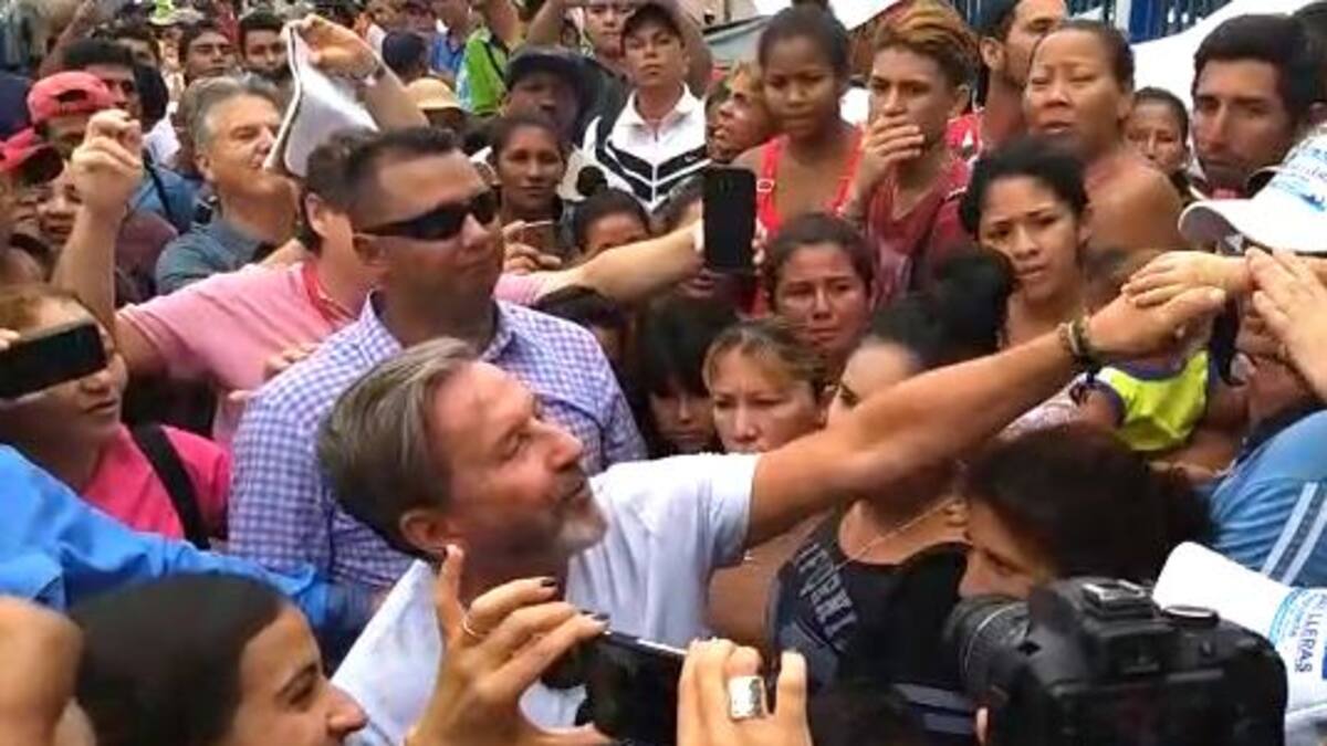 'No pierdan las esperanzas, las cosas van a estar bien', repetía el cantante mientras a paso lento saludaba uno a uno a cada venezolano que le estiraba las manos para recibir su abrazo.