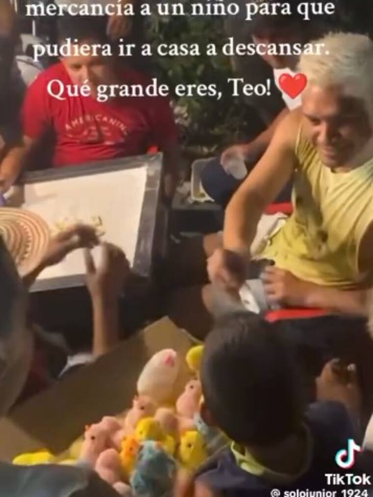 Luego, el futbolista repartió los pollitos de juguetes a todos los presentes. El video obtuvo varios comentarios tantos buenos como malos.