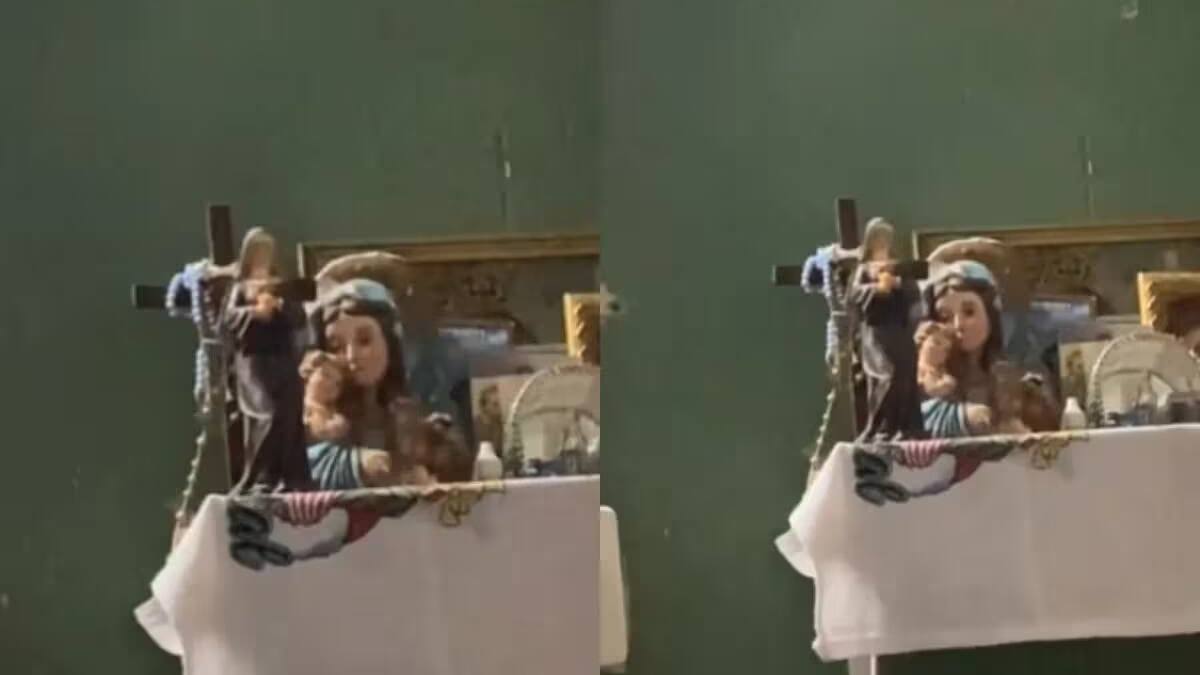 Se trata de una grabación nocturna que muestra una figura de la Virgen María que, presuntamente, estaría moviendo la boca como si estuviera hablando.