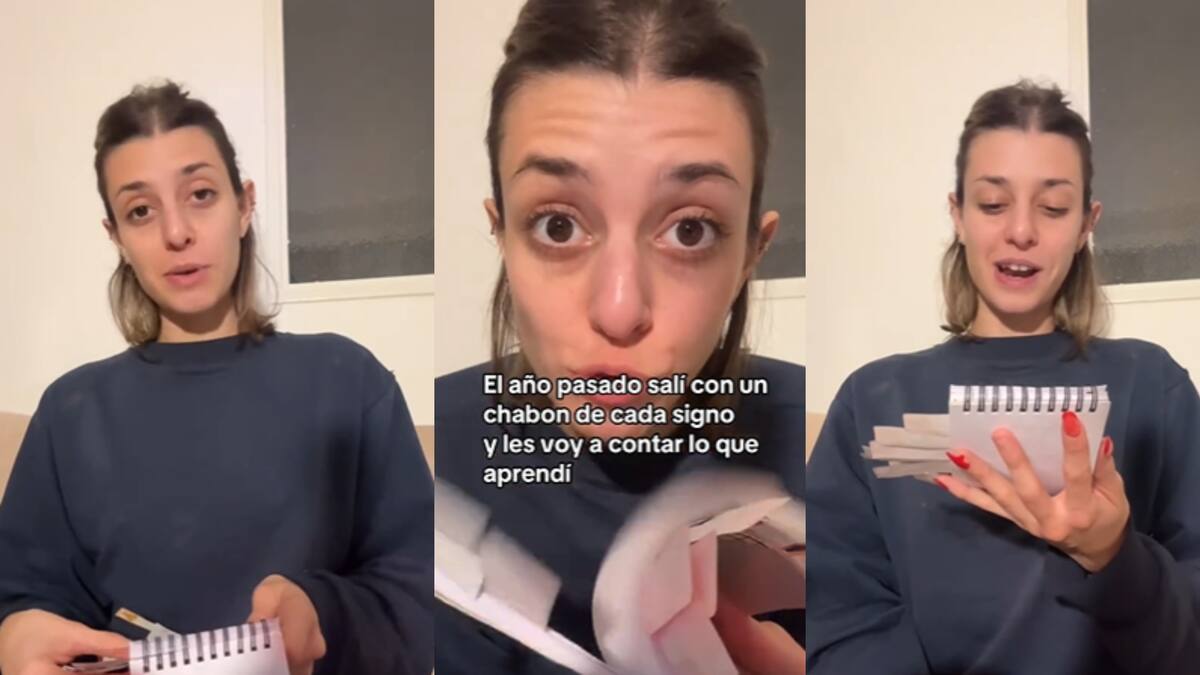 A través de un video de TikTok la mujer sorprendió al contar que cada cita que fue registrada en una libreta, donde anotó detalles como comportamiento del hombre, el tipo de conversación, la química, y las sensaciones que le dejó cada uno.