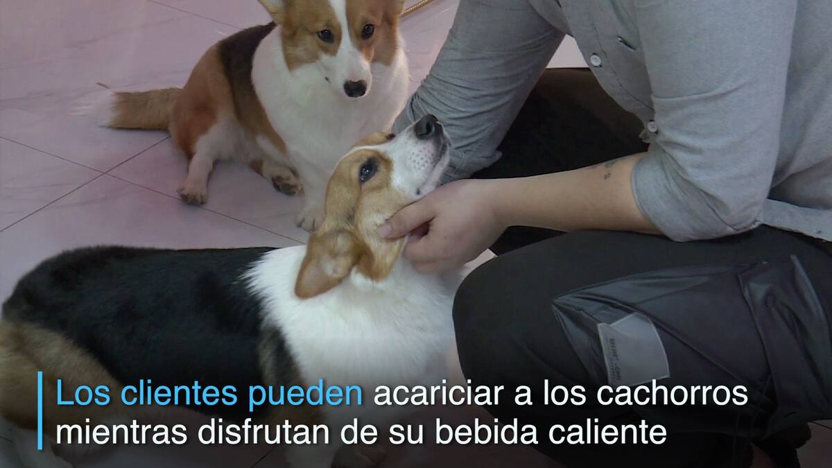 En un café de China, los clientes pueden mimar y acariciar a pequeños corgis mientras toman su bebida caliente. Una tendencia que se ha vuelto popular entre las personas que aman los animales pero no pueden criarlos en casa.