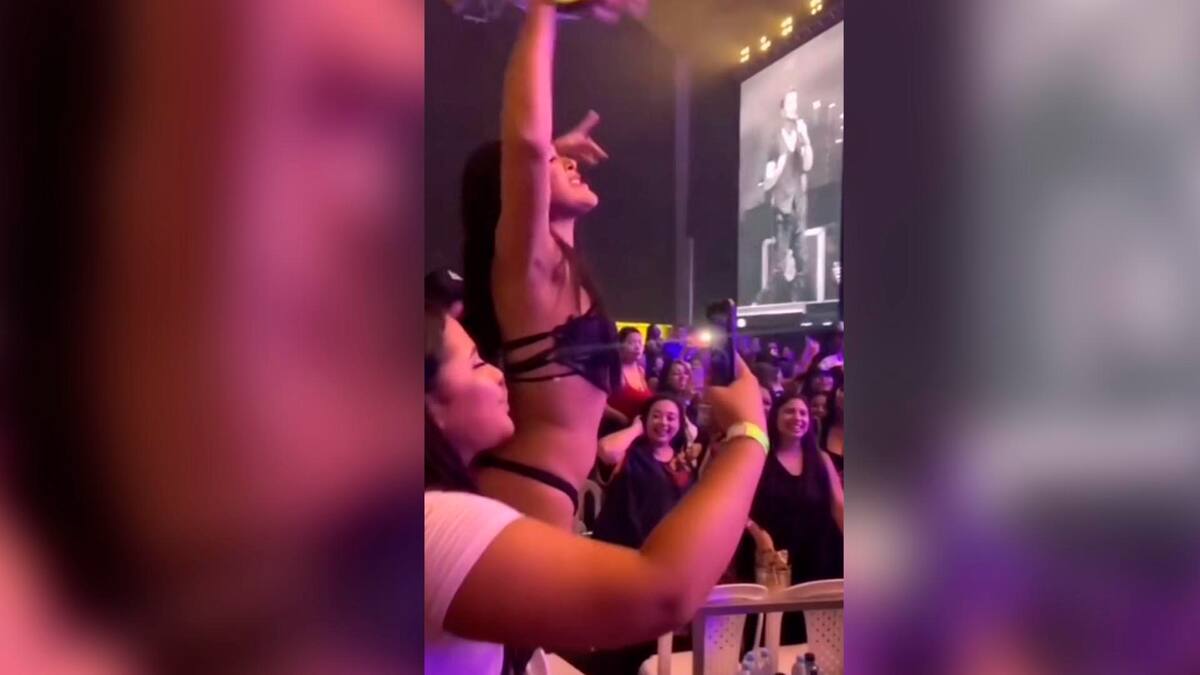 Fue así como, en un punto, una asistente tomó la decisión de quitarse la ropa y quedar en prendas menores para subirse en una silla y que el artista la viera desde la tarima.