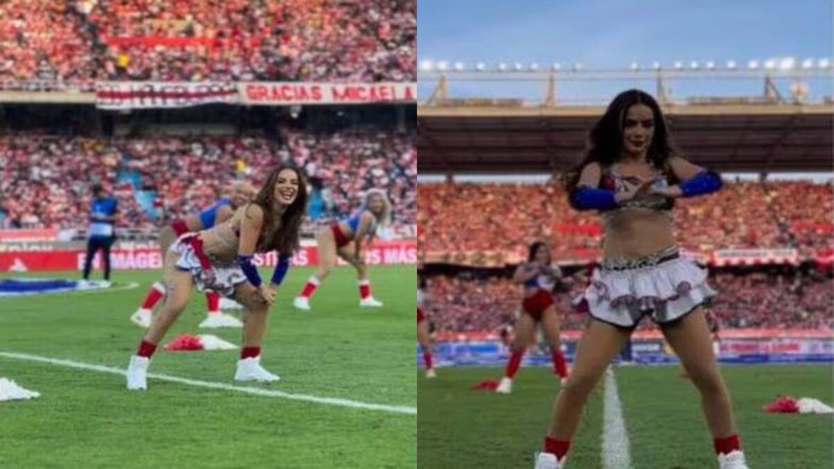 La barranquillera, conocida por su participación en Protagonista de Novela, cautivó a los espectadores con un espectáculo de baile que marcó la primera vuelta de la final de fútbol colombiano de los tiburones contra el DIM el pasado domingo 10 de diciembre.