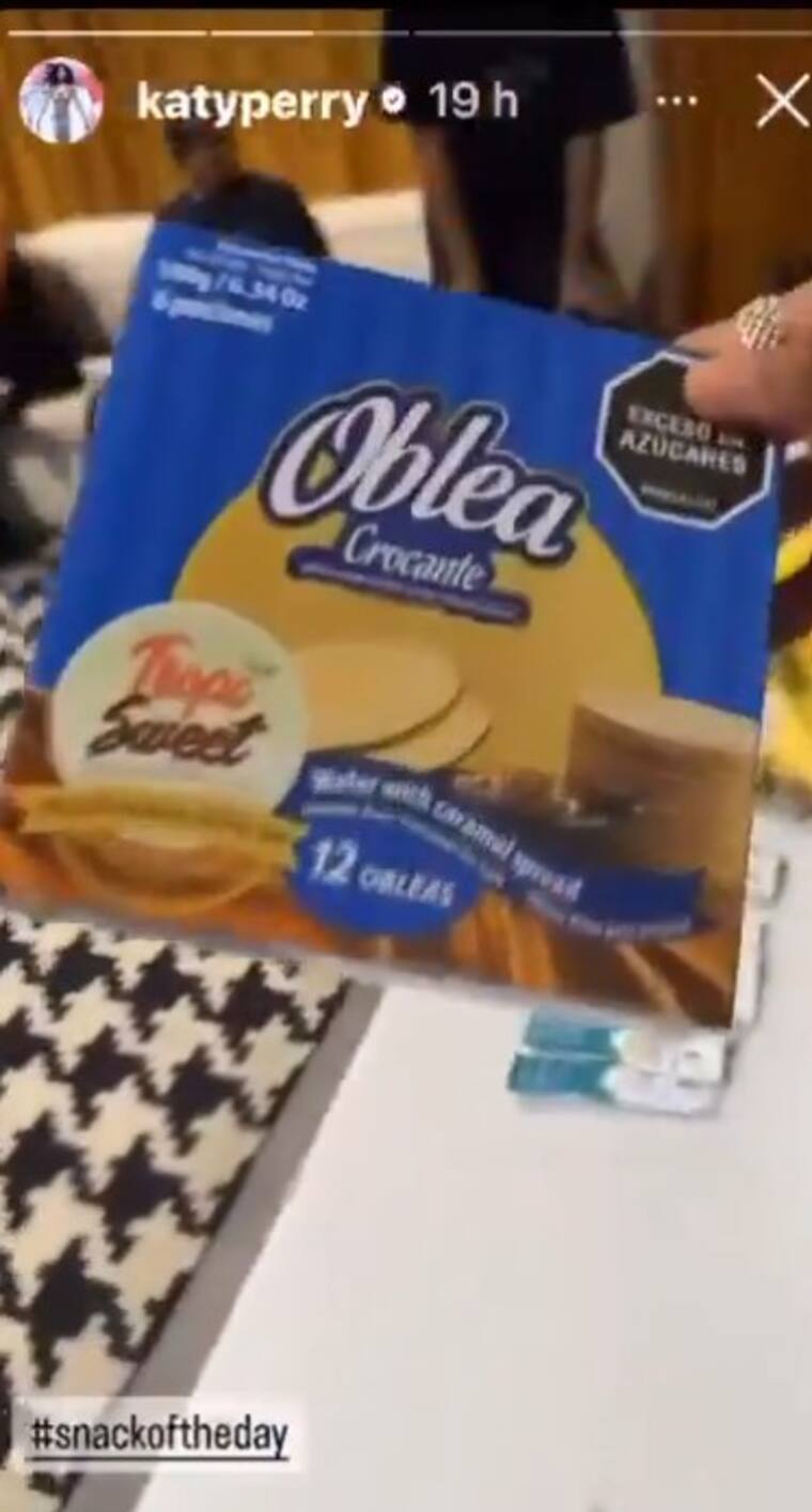 La cantante Katy Perry se volvió tendencia este fin de semana por mostrar en sus historias de Instagram el “snackoftheday” -como le dice a la merienda-, que comparte con su equipo de trabajo durante las grabaciones.