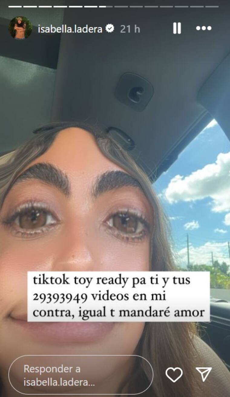 Además, indicó que estaba preparada para los videos de TikTok que iban a hacer sobre ella y su ruptura. “TikTok estoy ready para ti y tus 29393949 videos en mi contra. Igual, te mandaré amor”.