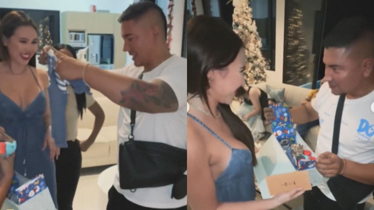 En el video se ve a Tejada ponerse muy contento y de una vez le besa la barriga a Aida Victoria. Luego un familiar pone la caja en el árbol de Navidad, y la creadora le dice: “Verdad, el Niño Dios te trajo un bebé”.