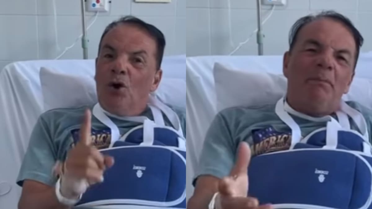 El comediante se grabó desde el hospital y reveló que tenía una fractura de húmedo, por lo que se encontraba recuperándose, y al parecer le tenían que realizar una cirugía.