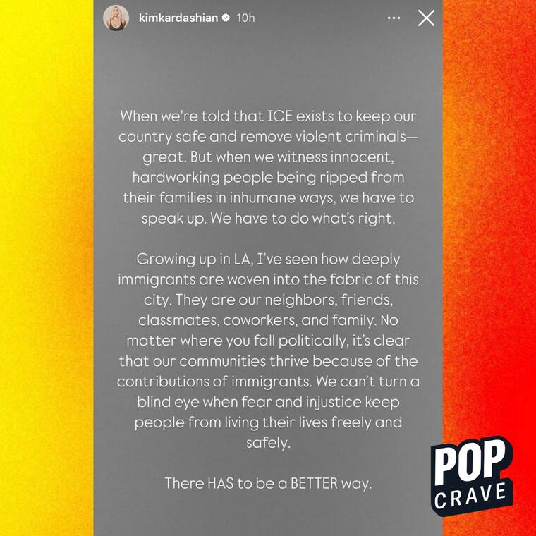 Su mensaje llega justo cuando múltiples protestas se tomaron calles de ciudades como Los Ángeles, San Diego y Sacramento, donde comunidades enteras exigen el fin de las redadas masivas y una reforma migratoria más justa. Kardashian, que en los últimos años ha estado involucrada en causas sociales y de justicia penal, no dudó en posicionarse públicamente.