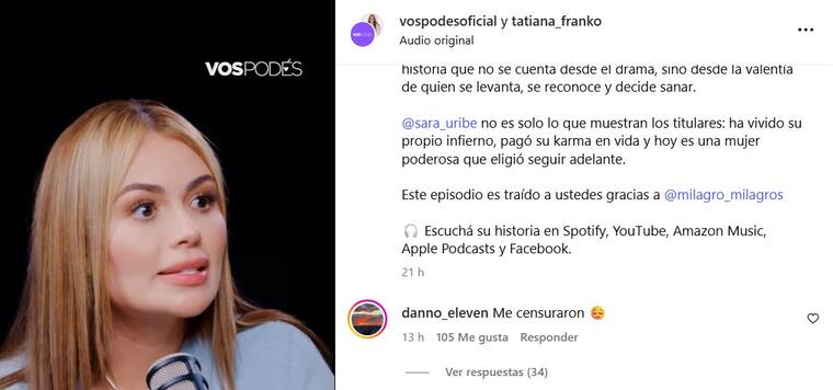 “Mentiras, que nunca nos pidió perdón de nada”, escribió el joven en la cuenta de Instagram del podcast, rechazando la versión de Uribe. En un segundo mensaje, profundizó: “Después de tantos años, y a mi mamá que fue la directamente afectada, nunca se ha puesto en ese plan de ‘autosuperación’. Aceptar el error también es dejar de hablar y de comentar sobre lo que haya pasado”.