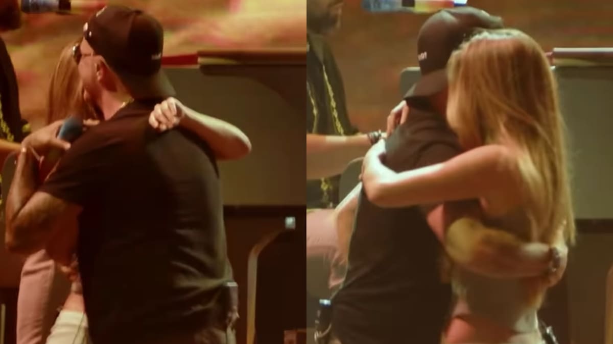 Durante su presentación en el Barclays Center, el cantante invitó a la actriz al escenario en medio de su show. Mientras sonaba su tema ‘Hoy no me siento bien’, ambos protagonizaron un momento íntimo en el cual bailaron muy cerca y se dieron un beso que desató la emoción del público.