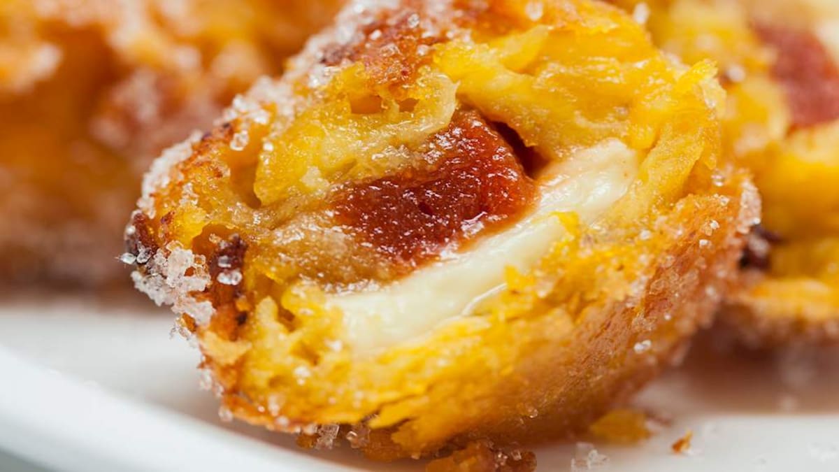 “El aborrajado es un plato colombiano que consiste en rodajas de plátano dulce rellenas de queso, rebozadas y fritas. Aunque el nombre aborrajado significa rebozado, el plato también se puede preparar al horno o a la parrilla”, describe TasteAtlas en su sitio web.