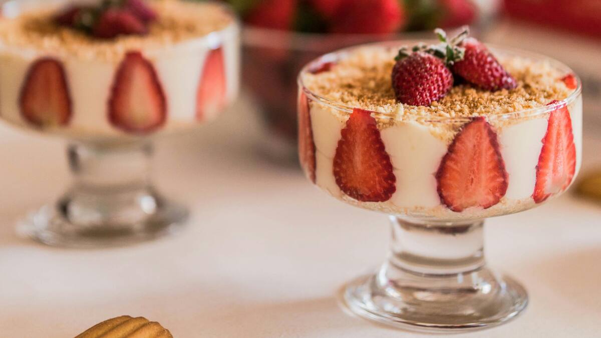A diferencia del tiramisú tradicional, que lleva café y cacao, el tiramisú de fresa se elabora con fresas frescas, que impregna los bizcochos de soletilla con un toque afrutado y ligeramente ácido.