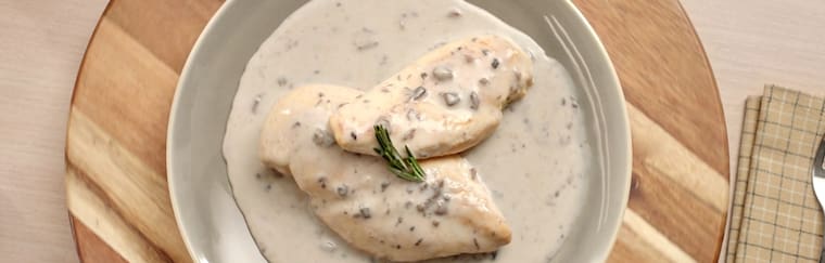 Esta vez le enseñaremos cómo preparar un delicioso puré de papas con queso mozzarella y pollo con salsa de champiñones. ¡Manos a la cocina!