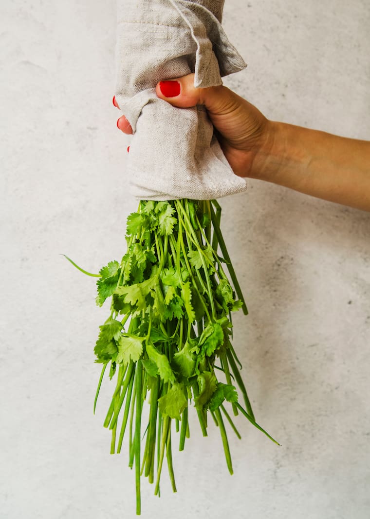 Hay otro truco y es que retira hojas dañadas, lave y seque muy bien el manojo. Envuelva el cilantro en papel de cocina ligeramente húmedo.