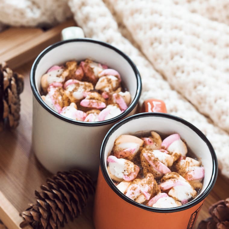 Son bolas de chocolate rellenas de cacao y marshmallows que se derriten al contacto con leche caliente, creando una bebida cremosa y deliciosa.