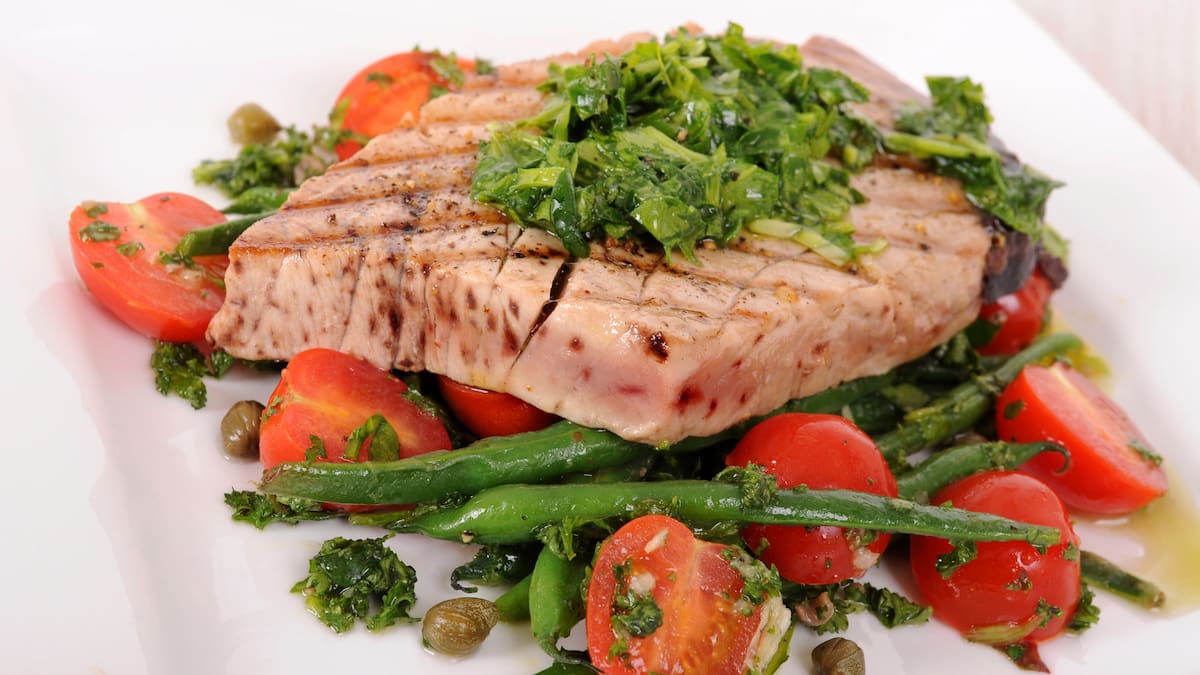 - Retirar los filetes de atún del marinado y cocinarlos en la parrilla durante 2-3 minutos por cada lado, o hasta alcanzar el punto de cocción deseado.