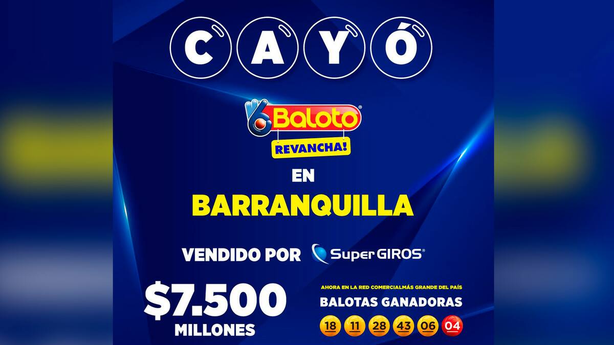 La suerte acompañó a un barranquillero en la noche de este 23 de noviembre, quien compró un boleto de Baloto Revancha en un punto de venta de Supergiros, ubicado en la calle 61 número 31 -08, bajo la modalidad de juego automático.