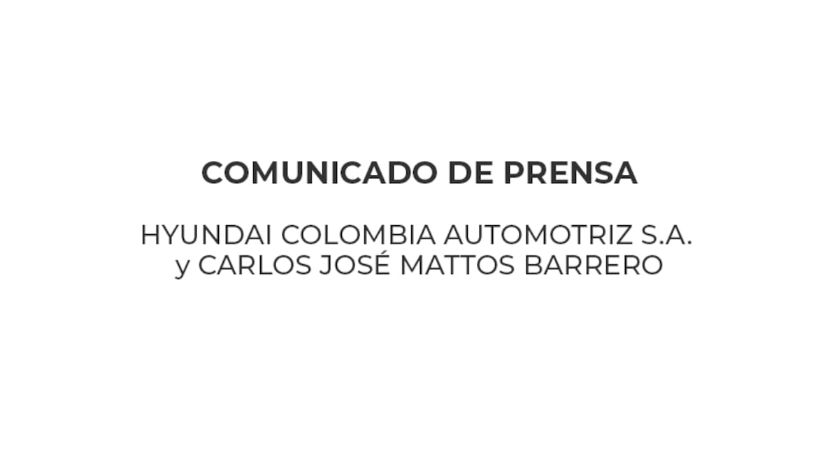 HYUNDAI COLOMBIA AUTOMOTRIZ S.A. y CARLOS JOSE MATTOS BARRERO informan a la opinión pública, que, respecto de los diferentes comunicados de prensa y/o a la opinión pública, publicados por nosotros en los medios de comunicación en el 2018 y en el presente año, en referencia al Grupo Eljuri de Ecuador y/o a los integrantes de la familia Eljuri y/o a algunas de sus empresas, actuales distribuidoras de la marca Hyundai en Colombia,