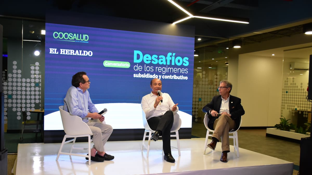 Para inaugurar la oficina de Coosalud para atención de usuarios del régimen contributivo, se realizó un conversatorio con Jaime González, presidente de Coosalud, y Andrés Aguirre, director del hospital Pablo Tobón Uribe, moderado por Marco Schwartz, director de EL HERALDO.