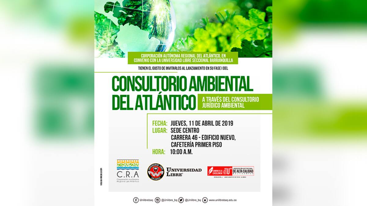 La Corporación Autónoma Regional del Atlántico (C.R.A) y la Universidad Libre Seccional Barranquilla se darán cita el próximo jueves 11 de abril de 2019, en el nuevo edificio de la Unilibre ubicados en la Sede Centro Cra. 46, para firmar el convenio que permita la implementación de la Fase I, en la cual se prestarán las consultorías mediante el Consultorio Jurídico de la Universidad Libre, bajo la denominación de Consultorio jurídico ambiental del Departamento del Atlántico, con las facultades de Derecho, Ingeniería, Ciencias Económicas, Administrativas y Contables y Ciencias Exactas y Naturales, en virtud de lo ordenado en la Resolución N° 0456 de 2018, cuyo objetivo es extender los efectos de las funciones referidas a ofrecer asesorías y asistencia técnica y jurídica en la gestión de los trámites ambientales, dirigido a los entes territoriales, organizaciones no gubernamentales, entidades públicas y privadas, estudiantes, investigadores y ciudadanía en general.