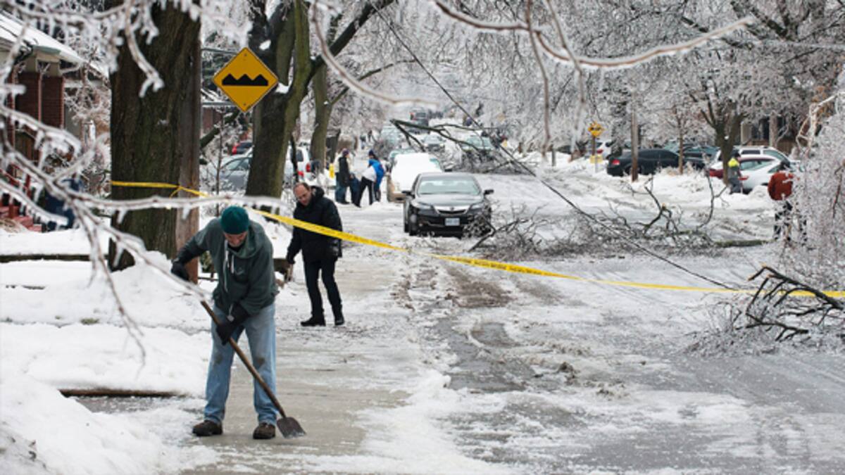 La tormenta de hielo que afectó al sureste de Canadá en la madrugada del 21 al 22 de diciembre provocó la ruptura de ramas de árboles que en su caída arrastraron líneas eléctricas. Solo en Toronto, alrededor de 300.000 personas perdieron el servicio eléctrico.