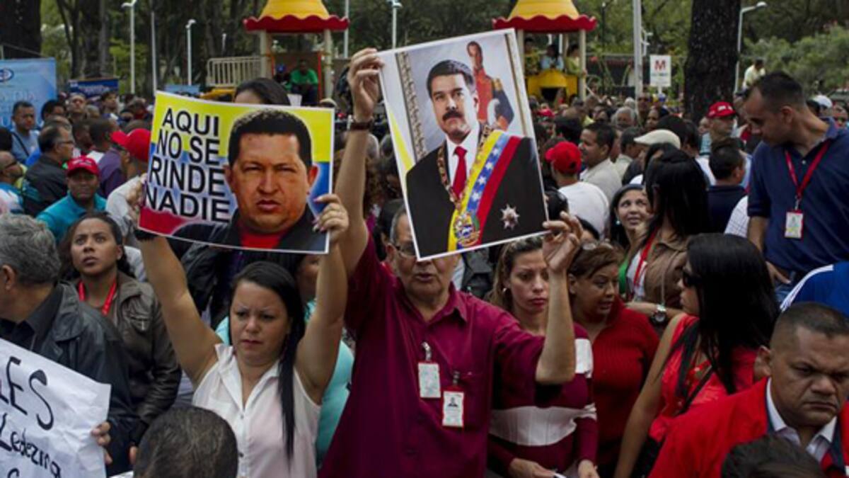 Entre pancartas, música y vendedores ambulantes, los seguidores oficialistas vociferaban consignas a favor de la llamada revolución bolivariana, liderada por el fallecido presidente Hugo Chávez (1999-2013).