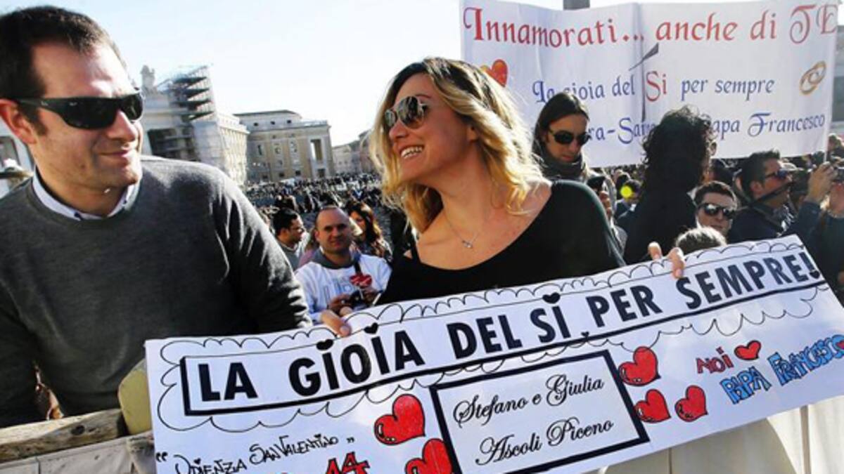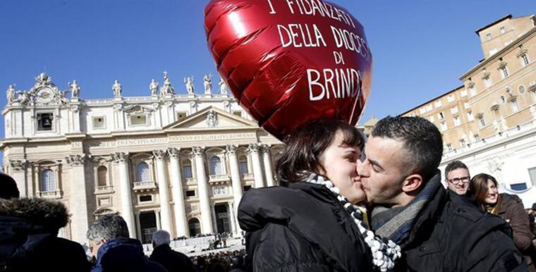 Un distendido y sonriente pontífice se reunió en la Plaza de San Pedro con 20.000 parejas de 28 países de todo el mundo, con motivo del día de san Valentín, en una celebración histórica, denominada 'La Alegría del SÍ para siempre', la primera de este género que se lleva a cabo en el Vaticano.