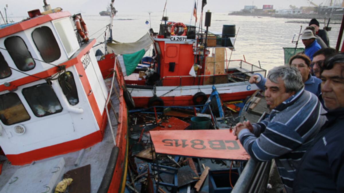 En Caleta Riquelme, en Iquique, pedazos de maderos y utensilios de pesca se mecían al compás del oleaje mientras rudos pescadores miraban con pena la pérdida de sus herramientas de trabajo.