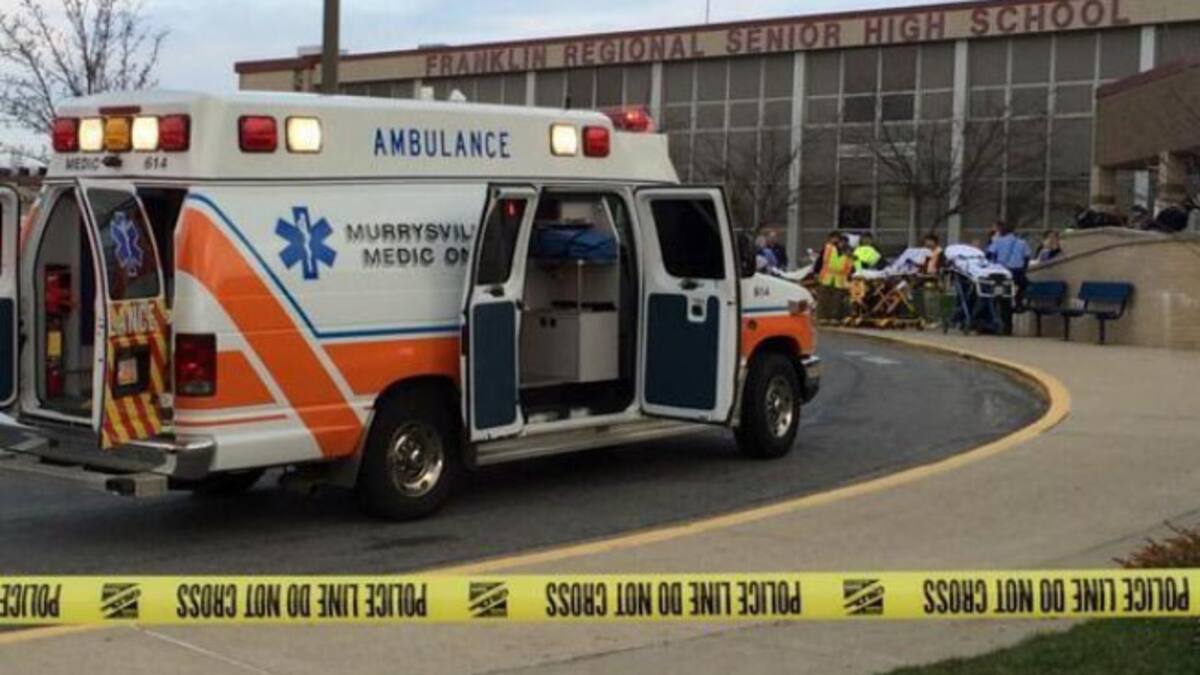 El portavoz de seguridad pública del condado Westmoreland, Dan Stevens, dijo que el sospechoso, un alumno de 16 años, fue detenido e interrogado por la policía antes de ser llevado a un hospital para ser atendido por heridas menores en la cabeza.