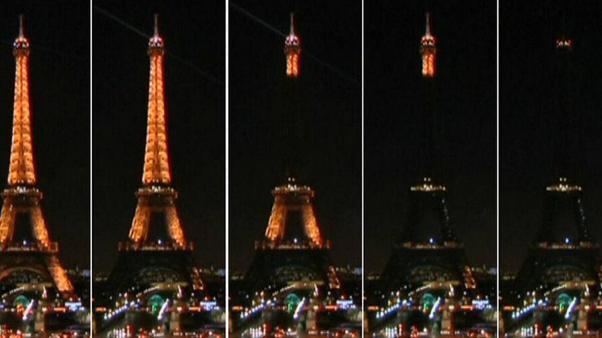 A las8:00 p.m. (hora París) las luces de la torre Eiffel fueron apagadas en señal de protesta por la masacre en el semanario satírifico Charlie Hebdo.