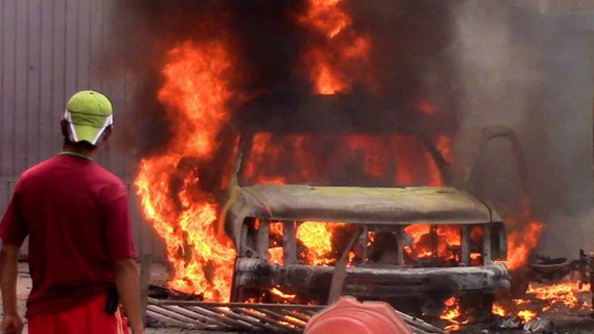 Posteriormente, los estudiantes se dirigieron hacia la Normal, ubicada en el municipio de Tixtla, pero al pasar por la comandancia de la policía municipal incendiaron una patrulla de la Secretaría de Seguridad Pública y una ambulancia de Protección Civil.
