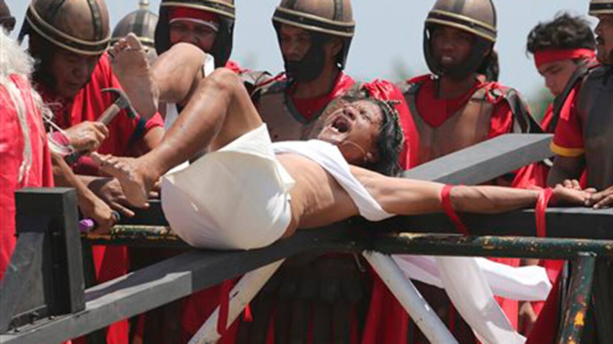 Gritando de dolor, varios devotos filipinos fueron clavados en cruces de madera para recrear la crucifixión de Jesús como parte de los rituales del Viernes Santo en la mayor nación católica de Asia.