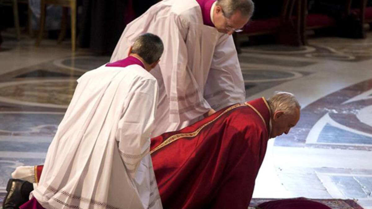 El acto comenzó con el pontífice postrado sobre el pavimento y orando durante unos minutos ante el Altar de la Confesión, bajo el que según la Iglesia reposan los restos del apóstol San Pedro.