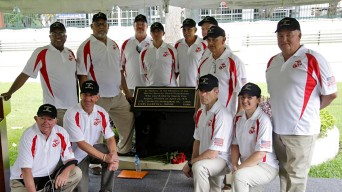 Después del desfile y los discursos de celebración ayer, un grupo de ex Marines de Estados Unidos que ayudaron a evacuar Saigón mientras caía en manos del enemigo tenían previsto reunirse en el lugar donde estaba la vieja embajada estadounidense, ahora consulado. Dedicarán una placa a los dos últimos camaradas fallecidos en la guerra: el cabo Charles McMahon y el cabo lancero Darwin Judge, que murieron el 29 de abril de 1975, cuando su puesto cercano al aeropuerto fue alcanzado por un misil.