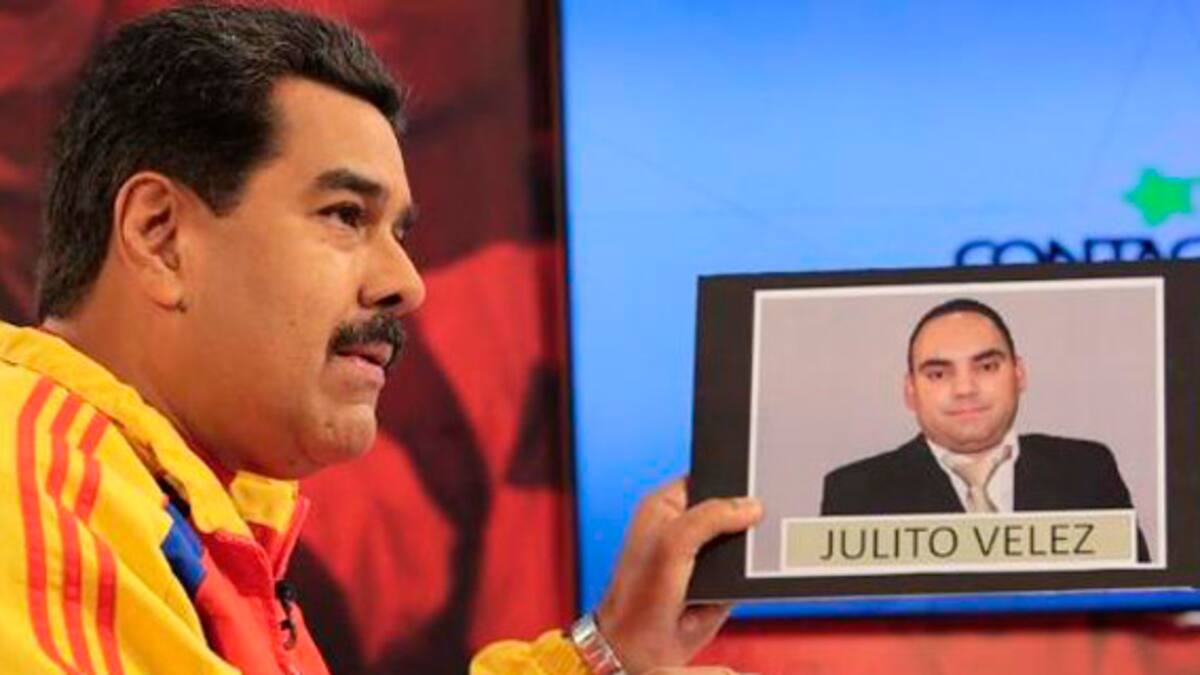 Maduro comentó que Vélez 'ya está en manos de la justicia venezolana, tras las rejas', después de una detención que, dijo, se hizo 'en tiempo récord' pues se produjo a solo horas de que él mismo solicitara a la comunidad colombiana que vive en Venezuela que lo ayudaran con esta captura.